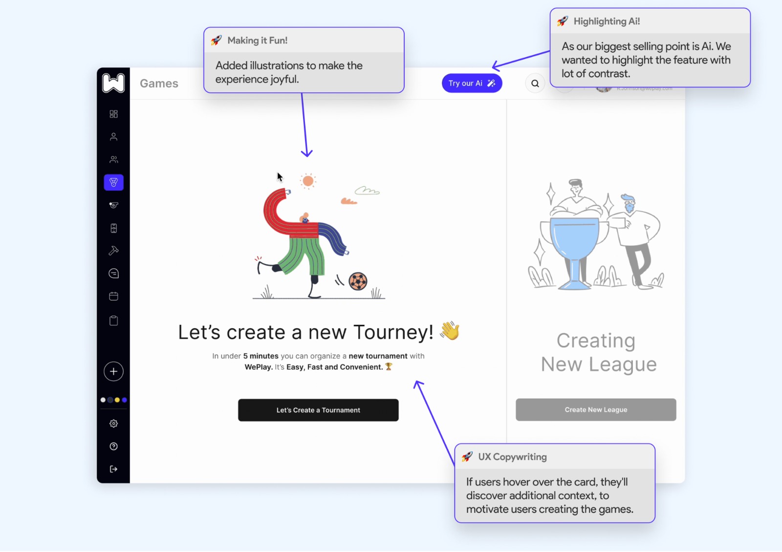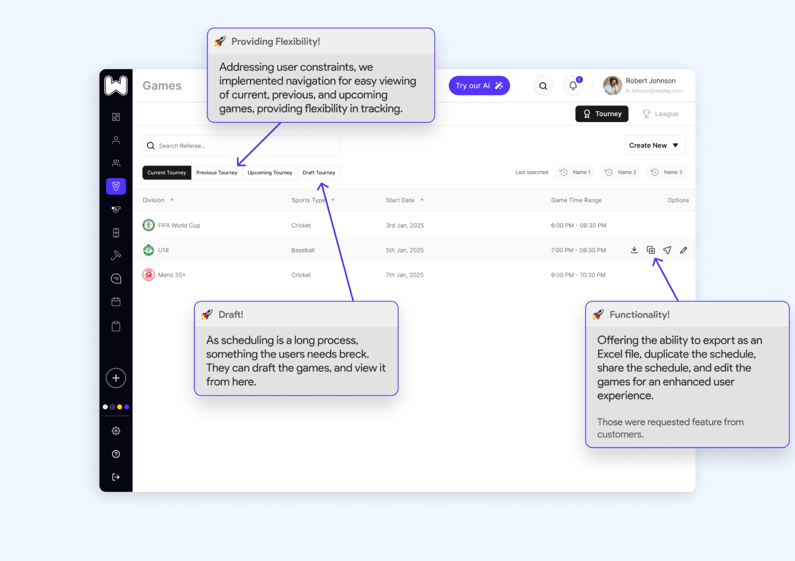 Our stakeholders were pleasantly surprised by the innovative vision we presented to address the existing sports scheduling challenges through our new design. We've even developed an MVP version for an early release that will be launched soon.