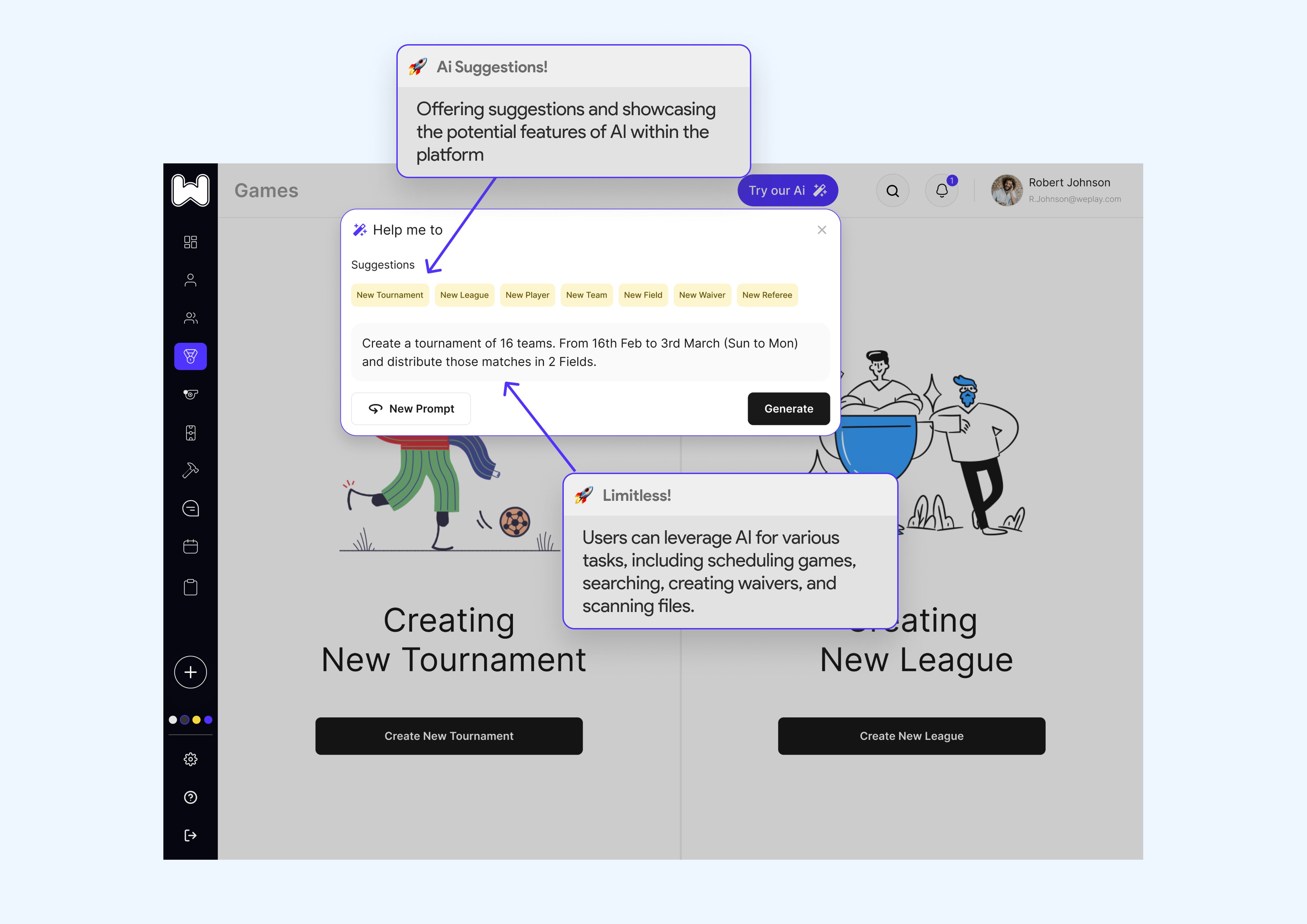 The integration of AI into our sports and facility management software brings forth limitless possibilities. Facility admins, in particular, can assign tasks to maintenance, add players using paper photos, and do a lot of things using the integrated Ai feature.