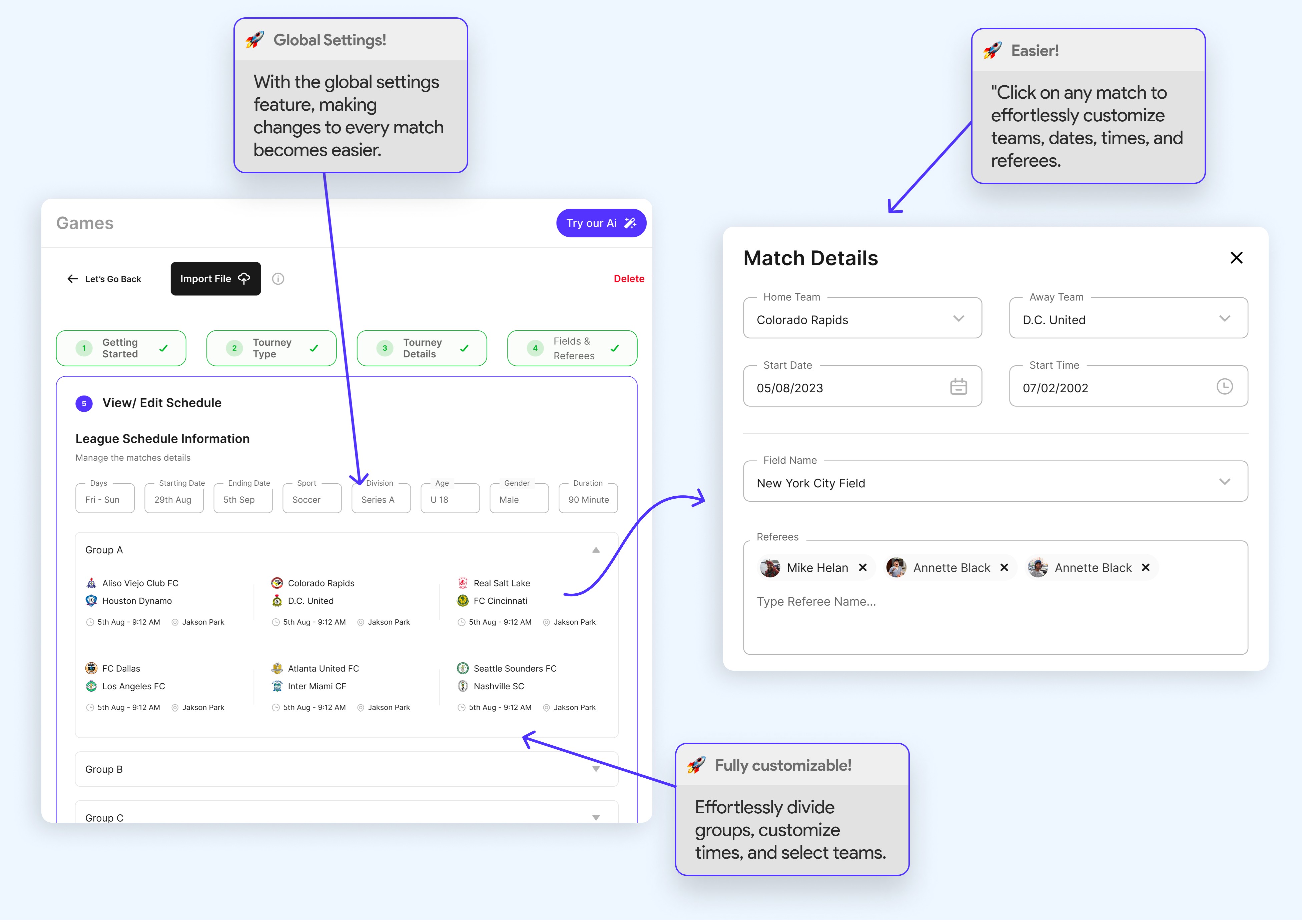 Turning the sports scheduling journey into a breeze! π¬οΈβ½